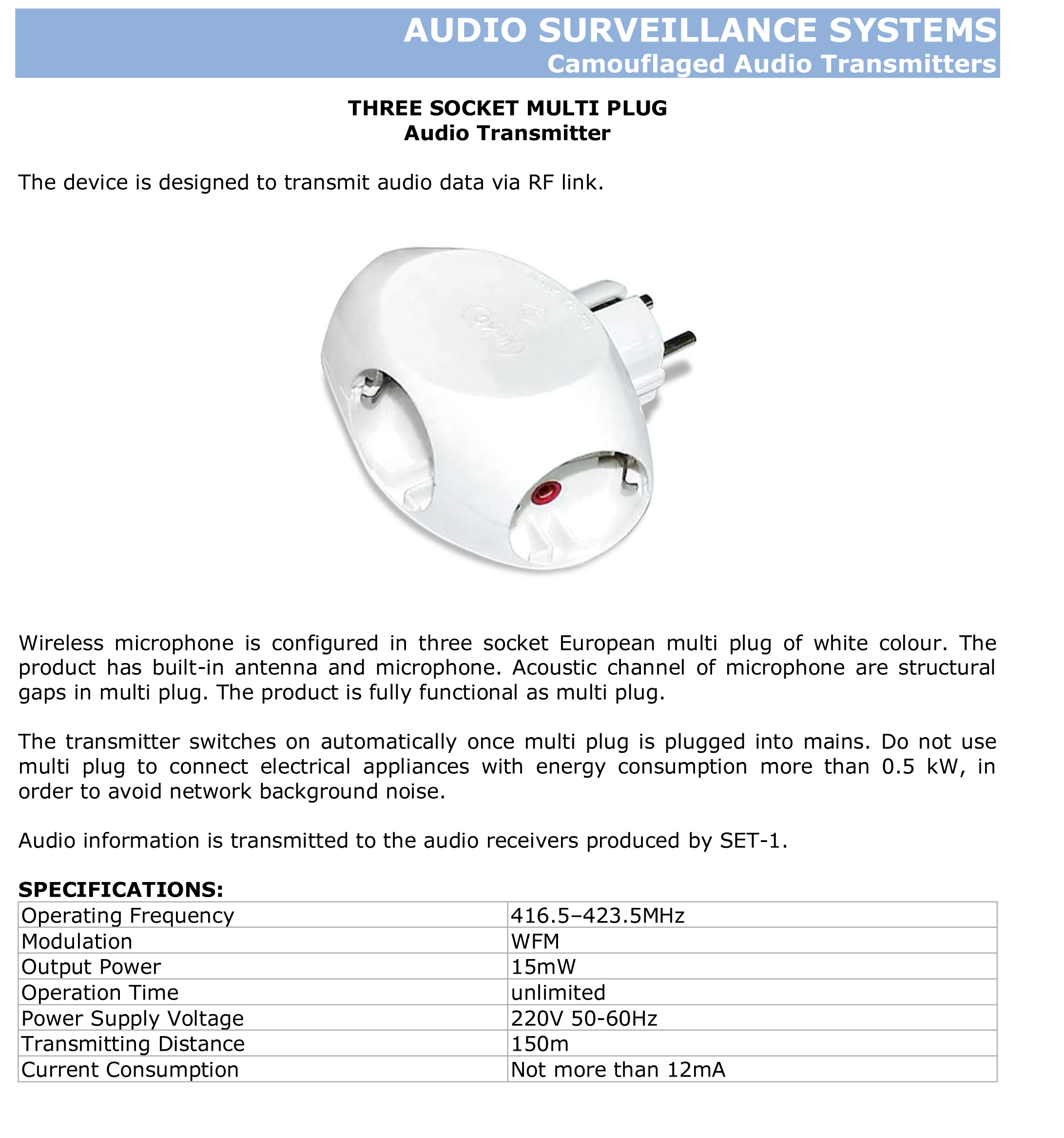 THREE SOCKET MULTI PLUG Audio Transmitter